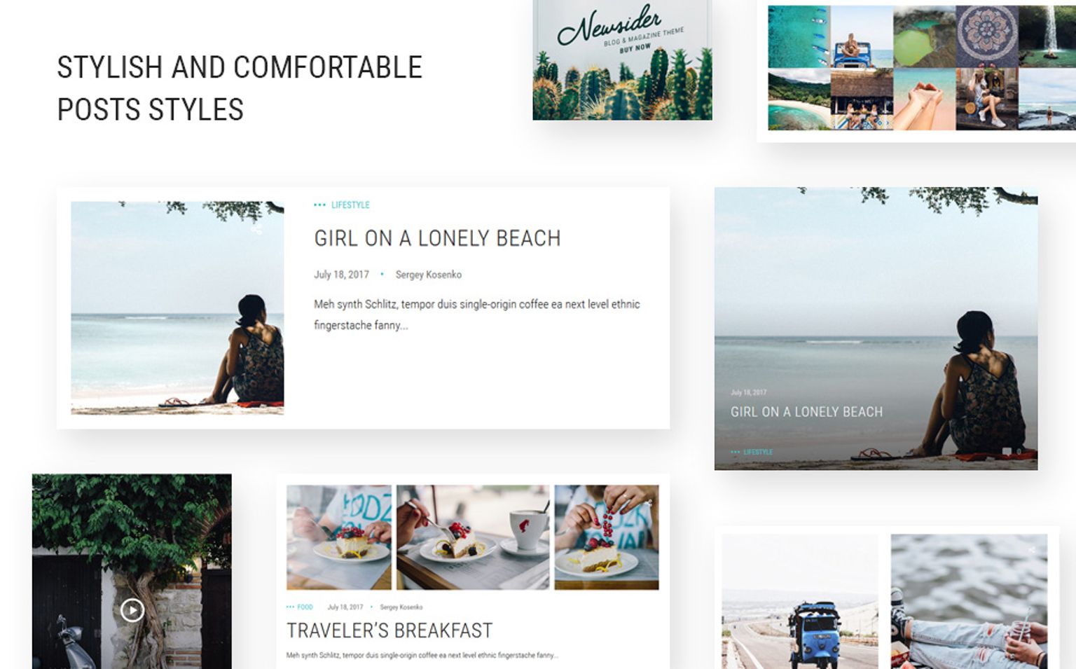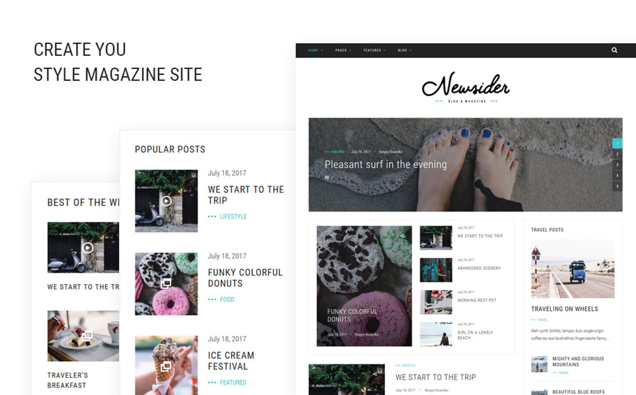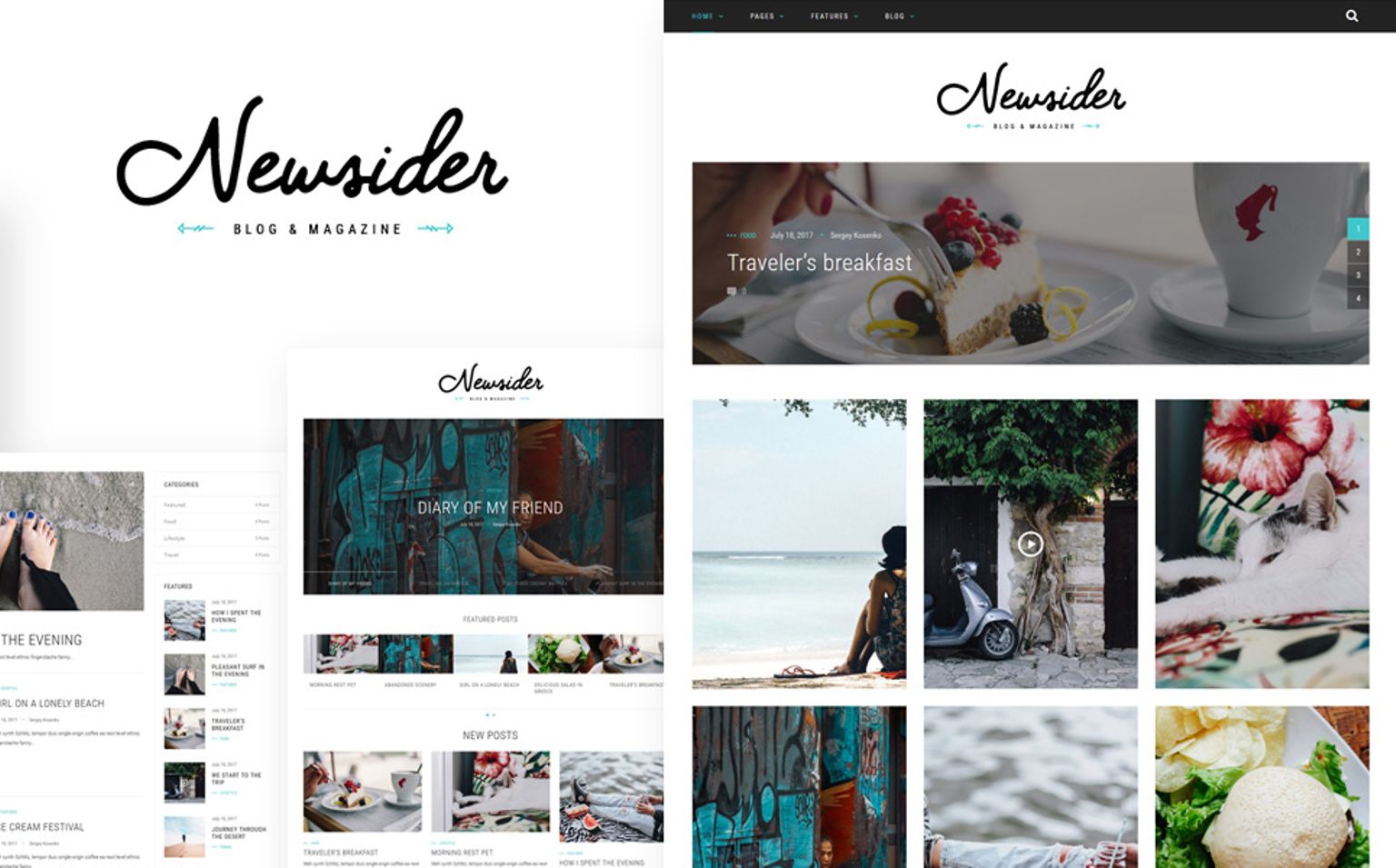 Newsider is a stylish and comfortable blog and magazine theme book, It is perfect for a tourist blogger, a fashion blogger or magazine about food or even politics. It is flexible, easily customizable, you can easily choose the color you need, change to your favorite font and choose the style of your future magazine or blog. Everything is done simply, the installation will take no more than 10-15 minutes.