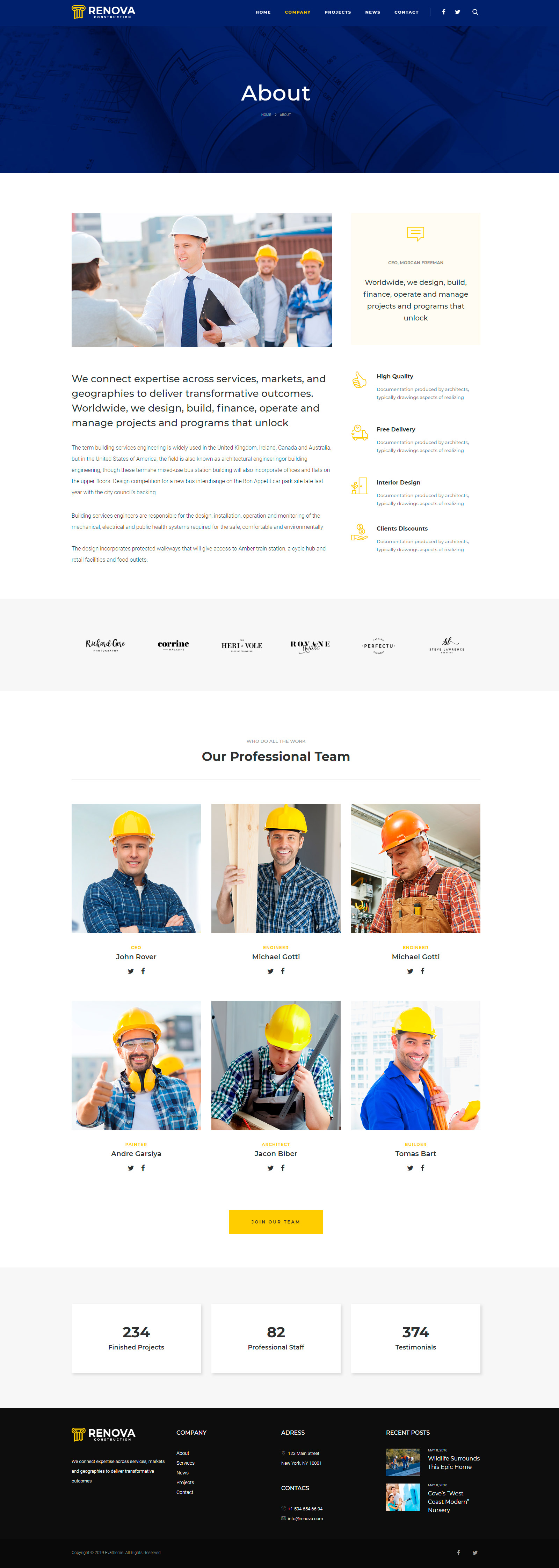 Excellent business theme for the construction and repair. It has everything you need to implement your first site. A convenient portfolio will allow you to show your work to future clients. Clear and accessible templates for other pages.
