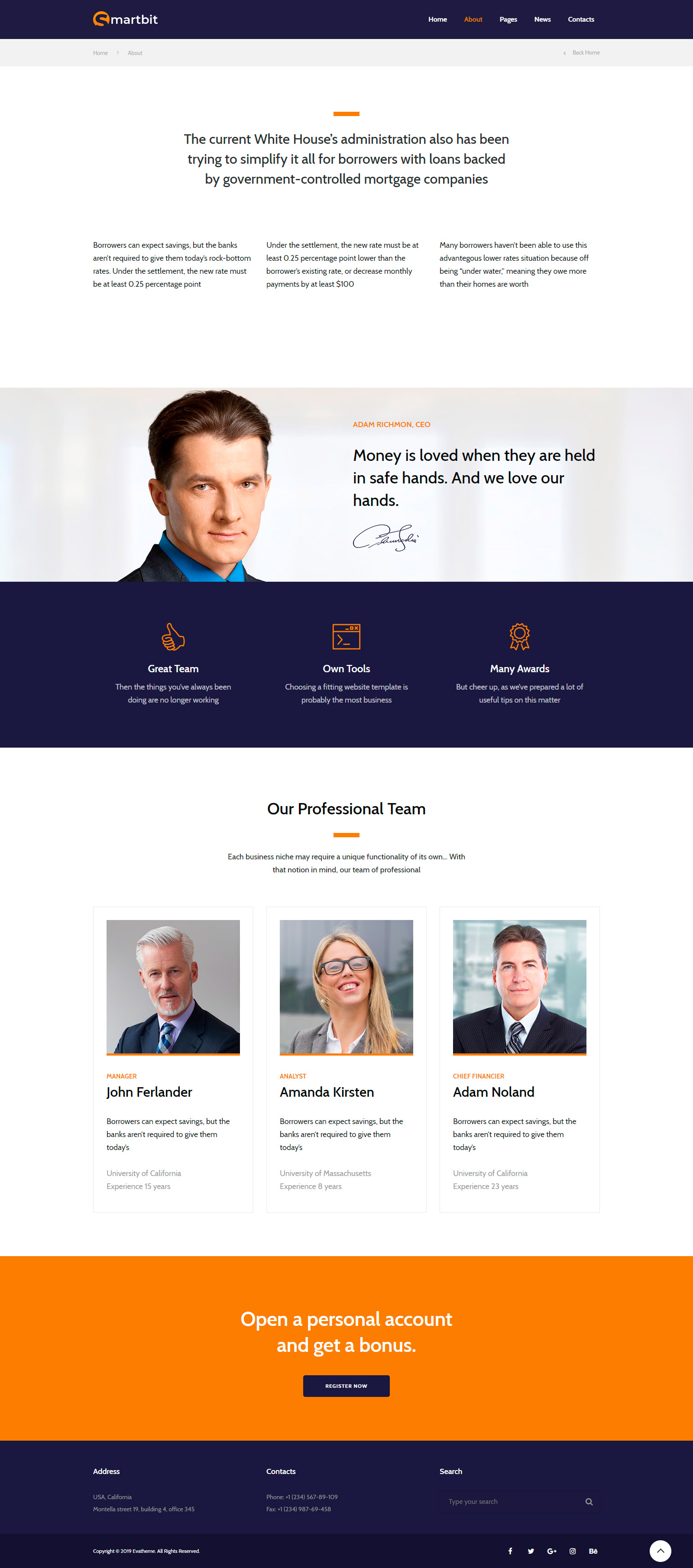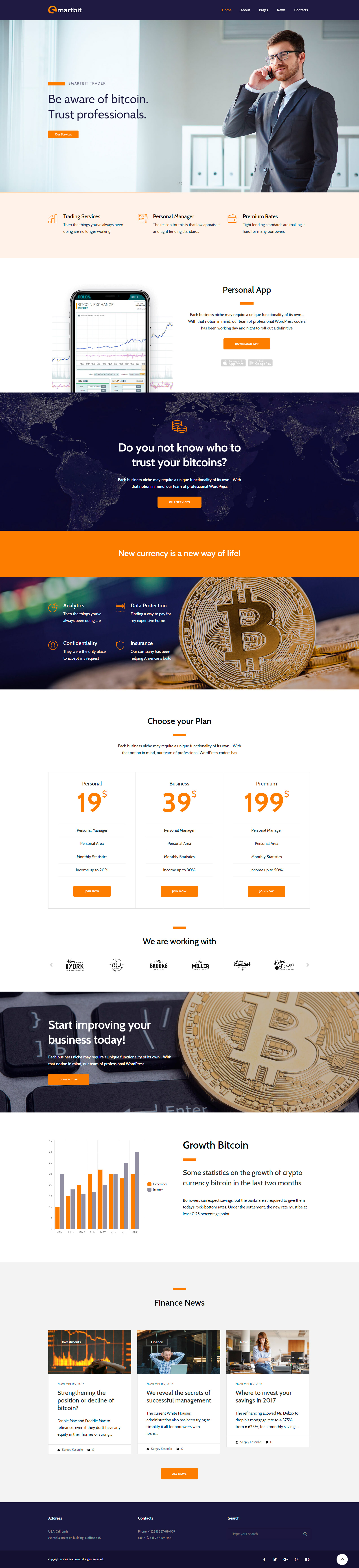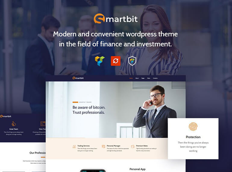 Smartbit – Finance & Corporate WordPress Theme excellent strict and corporate theme in the field of finance. Excellent for various financial companies that provide services in finance, banks or investment companies.
